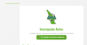 - Seguridad: Arriba del formulario verás un botón verde que dice «Ver medidas de seguridad obligatorias». Te sugerimos leerlo para asegurar que tu vehículo cumple con el reglamento técnico.